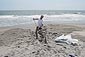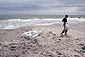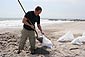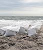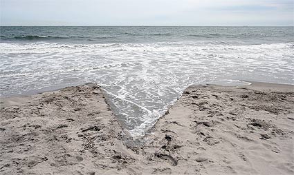| 10 METERS OF EXTENDED US COASTLINE sculpture | 2007 I dug a hole on the Long Island beach shore in New York, symbolically "stealing" U.S. territory by sending the displaced sand back to myself in Europe. Some of the sandbags were also intended for US military bases inIraq, to be used for protection in the conflict, referencing the U.S.'s controversial involvement in the Iraq War.
